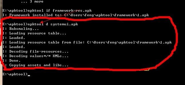 5、 輸入apktool d systemui.apk(回車),看到下面就成功一半了