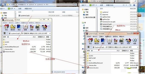 9、 最后,很重要的一步,你看不到自己卡M了不要怪我哈。這里將原始apk稱為A,新生成的apk稱為B。以方便下面敘述。將A,B均用winrar打開,不要解壓。