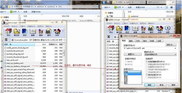 第一,(還有第二哦)將B中的resources.arsc文件拉到A中替換,壓縮方式改為存儲。切記