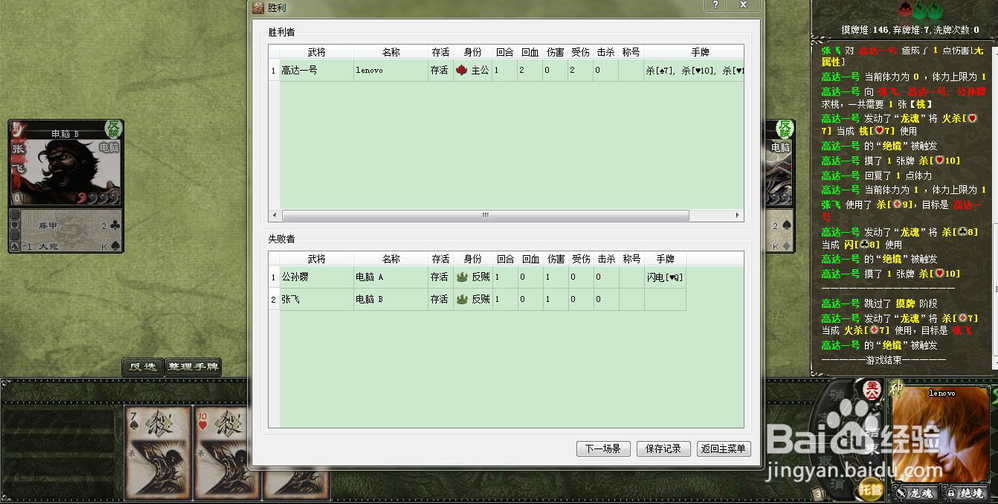 最后用龍魂,火殺殺張飛,由于藤甲,兩個人都爆掉。