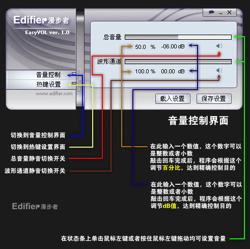 漫步者高精度音量快捷控制器Edifier EasyVOL是一個(gè)實(shí)現(xiàn)快速精確控制音量的軟件,調(diào)整精度極高,適合任何裝有聲卡的Windows(32bit系統(tǒng))。