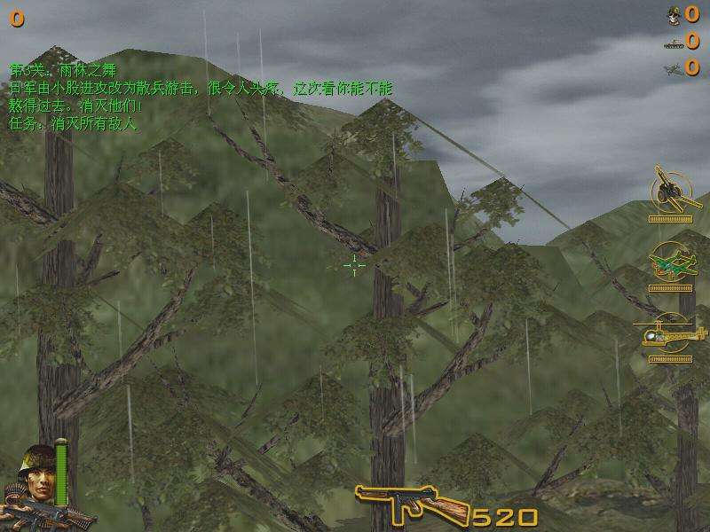 在1944年的大反攻中,你作為一名中國軍人,擔(dān)任先遣隊的一員,向緬甸一望無際的叢林中搜索前進。由于情報有誤,你不慎深入日寇的大部隊中,此時,我軍主力尚在100公里以外,敵人卻如潮水般涌上前來??偛拷o你的命令是死守陣地,直至大部隊趕到?,F(xiàn)在,你成了一名真正的英雄,一人對抗成千上萬的兇惡敵頑。但是你并不孤單,你擁有精良的武器,包括M1911式自動手槍,性能卓越的Thompson沖鋒槍,點面俱到的迫擊炮,還有坦克殺手——巴祖卡,當(dāng)日軍的坦克和裝甲車大搖大擺地開過來時,用你的巴祖卡把敵人的烏龜殼轟上天!