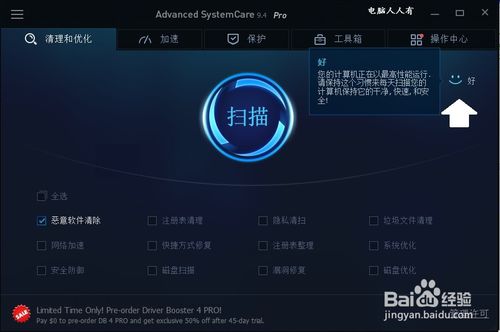 Advanced SystemCare 使用注意:1.本ASC已經(jīng)被無名智者破解,不需要升級注冊為Pro版