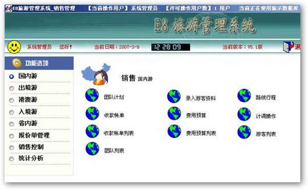 2、系統(tǒng)的設(shè)置體現(xiàn)三個(gè)中心的思想:銷售中心、計(jì)調(diào)中心和財(cái)務(wù)中心;
