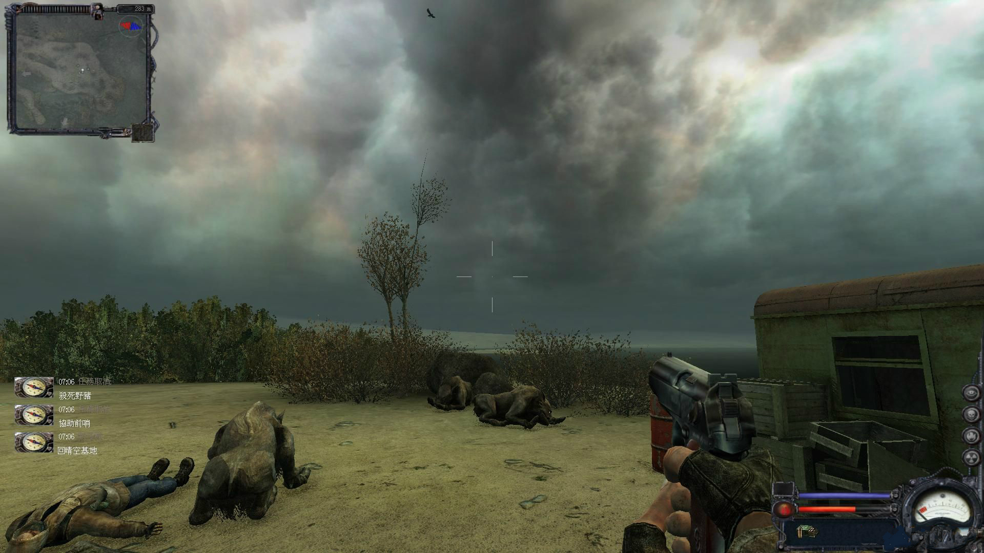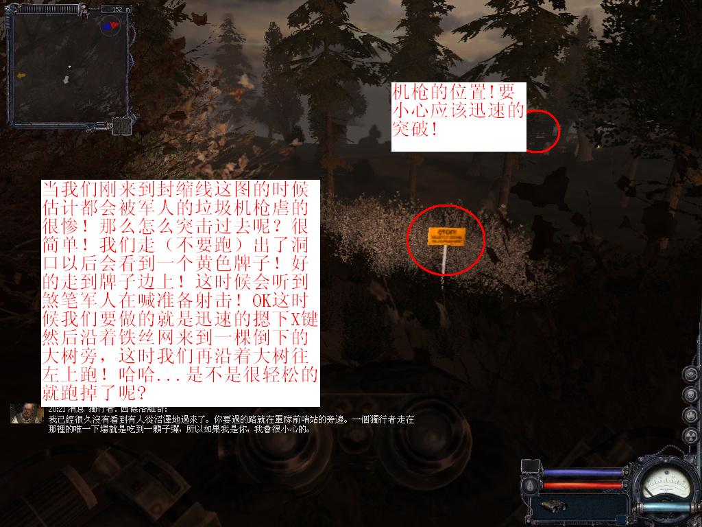 這里我要詳細(xì)的說明下!那就是幫助沃夫找回小弟以后我們要徑直的往潛行者營地跑!路上有增援任務(wù)就幫忙做下沒有壞處!盡量先不要去涵洞里跟軍官司機(jī)見面或者對話再或者接任務(wù)!