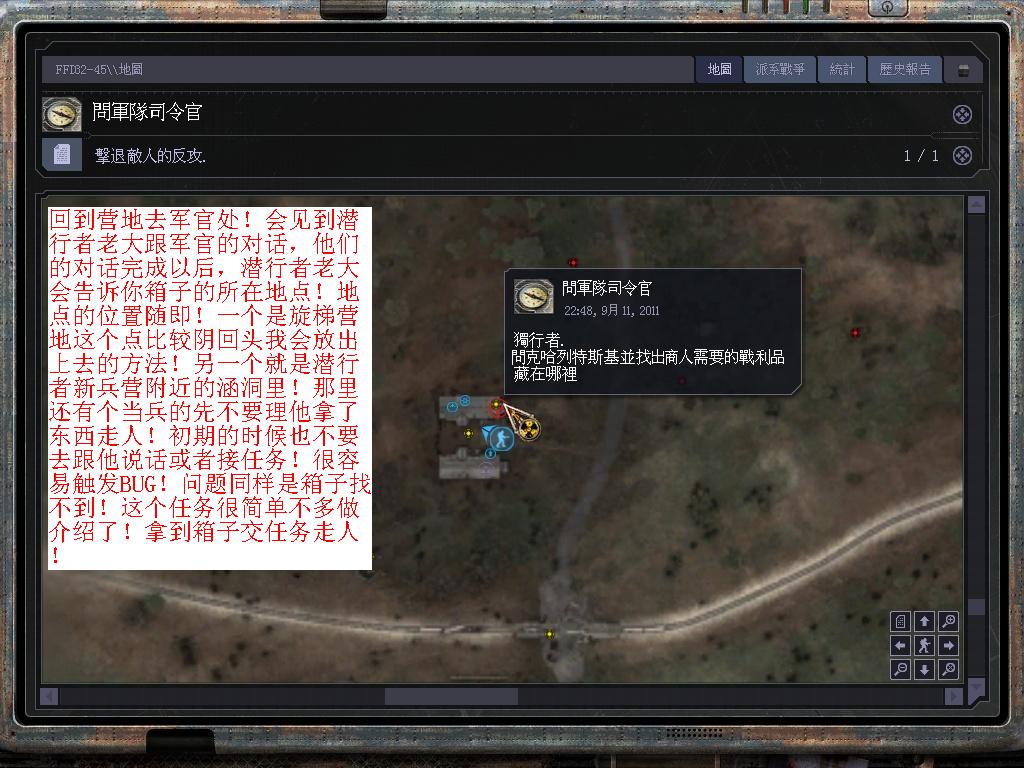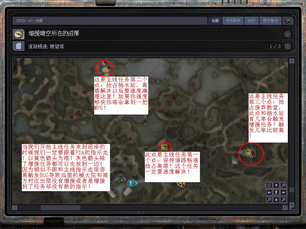 還有些BUG的原因是因?yàn)闆]有按照PDA任務(wù)指示去做!一上來就N給了個任務(wù)論誰都會有些茫然! BUG的原因我回頭會詳細(xì)告訴你們!下面給你們介紹下沼澤任務(wù)流程!這個流程觸發(fā)BUG的幾率是最小的!