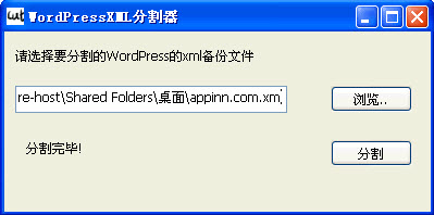 WordPressXML 分割器 是專門針對 WordPress 備份文件 xml 進行分割的小工具,可以將超大備份文件分割為很多的 2M 小文件,方便導入,開源。