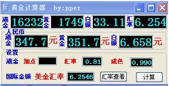 黃金計算器集合了自動計算港金,國際現(xiàn)貨金銀價格,換算成人民幣價格方便大家使用,港金是適用福建莆田人,深圳,一帶收實物黃金的,當然大家也可以根據(jù)上面算出港金的價格知道目前市面上收黃金什么價。