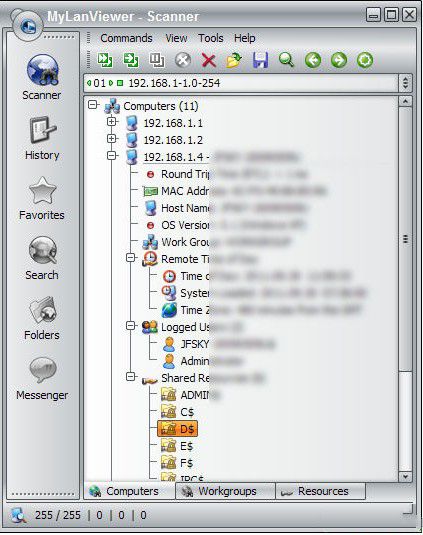 MyLanViewer 強(qiáng)大的局域網(wǎng)掃描工具,能掃描出局域網(wǎng)里的所有電腦信息和共享文件,分為快速掃描和完整掃描模式,掃描后就能獲得電腦名,IP地址,MAC地址,共享資源等信息,小編試用下,一下就掃出了所有共享文件,比windows系統(tǒng)自帶的局域網(wǎng)工具強(qiáng)多了。