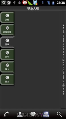 -完美的聯(lián)絡(luò)人組管理, 可以建立組,修改組,刪除組,設(shè)定組鈴聲,將組放入黑名單對(duì)組發(fā)送群組訊息等功能,可以使用T9對(duì)聯(lián)絡(luò)人組名搜尋,可以設(shè)定組標(biāo)簽顏色等等,所有組都可以和Google 帳戶伺服器直接同步。