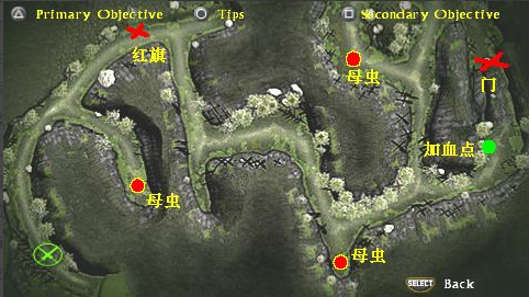 前進的途中會有一個紅旗點,這里可以作為恢復(fù)HP和武器耐久的大本營。打一打就回來整頓一下。繼續(xù)前進,打破兩道樹桿后會來到一個分岔點。右邊的路會有一個加血點,盡頭的門打不開,所以先去加血點,之后走左邊的路。左邊的路有毒氣的地方,不要做太久停留。進去后操作逆轉(zhuǎn)時要及時改變遙桿方向。一般都不會有什么問題的。然后去解決最后一只大母蟲,再兜右邊回到加血點。右邊有個門還記得不。開關(guān)就在我們這邊,踩上去就可以打開門,然后和同伴匯合,去加血點加好血再慢慢收拾敵人。