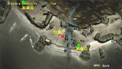 沙灘上出現(xiàn),往上走就會遇見敵人,這回的敵人是人類,感覺攻擊力比之前的家伙們高不少。要小心應(yīng)付。一路前進,路上會有一個木箱,里面是一把三級劍,不要忘記拿。繼續(xù)往前,有一幫一敵人,這里的敵人會掉三級裝備,真好。消滅后進門,又有幾個敵人沖出來。其實打到這里,敵人也就差不多是這樣的程度了,難不倒各位的。來到沙灘附近會有一個加血點,同時周圍出現(xiàn)一些敵人,有了加血點就和無敵沒什么分別了。全滅敵人,打破左邊的擋路石,前面小橋上有3個敵人,過橋后下方有紅旗,可以回大本營……周圍會有很多敵人。有大本營和加血點,再多敵人也是來送死的。全部做掉。