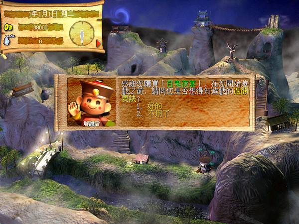 到地圖上的『夢婆茶樓』、『五云洞』、『奈何僑』,可碰到包打聽買情報,『斷魂坡』、『五云洞』、『奈何僑』、『千奇巖』,可買到四樣新菜,依次序分別是『辣手炊花』、『修成正果』、『千里香』、『醉八仙』,不過要有足夠的錢,否則會錯過機會。另外食神和酒神為了百鬼夜宴大典,會聯(lián)合一次送數(shù)道菜!