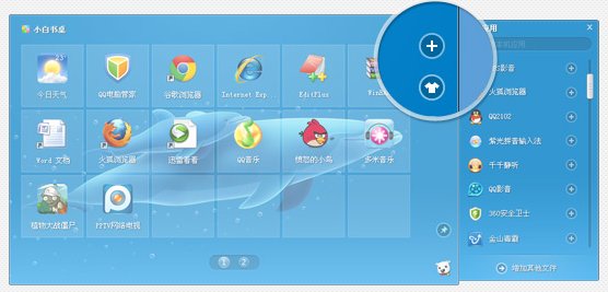 "小白書桌"是一款桌面客戶端產(chǎn)品,幫助您集中管理電腦上的各項(xiàng)程序,使您能夠方便、快捷地找到需要運(yùn)行的程序或文件。"小白書桌"不限于軟件的管理,您還可以將照片、文檔、音樂等文件添加進(jìn)“小白書桌”進(jìn)行管理。