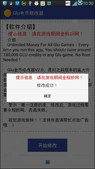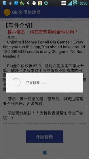 3.啟動GLU金幣修改器并等待修改成功