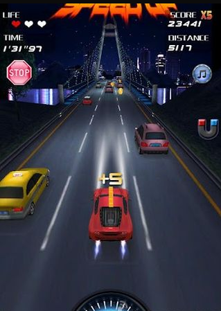 《午夜狂飆SpeedNight》3D瘋狂賽車,這是一款以午夜賽車為主題的3D游戲。左右搖擺設(shè)備,控制你的賽車的轉(zhuǎn)向,躲過(guò)路上的NPC車輛。在行始過(guò)程中,你可以收集金幣,這可以讓你在選車界面