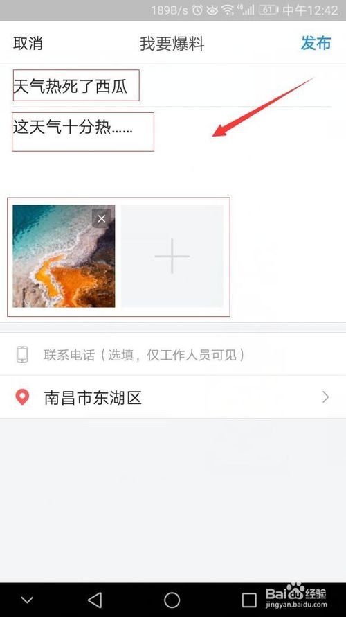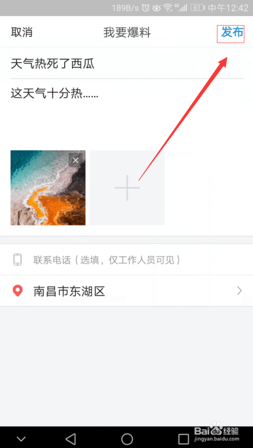 接著就來到了爆料的編輯界面,這里,我們可以看到一些具體的爆料標題-內容-圖片的設置,如圖。