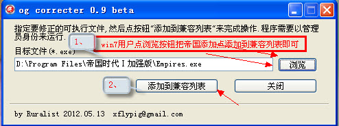 指定要修正的可執(zhí)行文件,然后點(diǎn)按鈕 "添加到兼容列表 "來完成操作.程序需要以管理員身份來運(yùn)行.