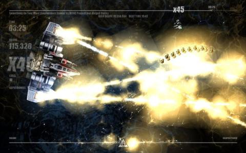 游戲難度還是比較大的,你要在這歌曲唱完還能活著呆在游戲中,但是每一首歌你都有3條命,右下角還有2枚炸彈供你使用,可以摧毀你身旁所有的敵人。在戰(zhàn)斗過程中會掉落很多道具,例如分數(shù)增倍、射擊加強等等非常豐富。每當戰(zhàn)機被擊中死亡一次會爆出各種buff道具,所以剛復活的時候記得去接道具哦。