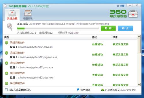 之后點(diǎn)擊系統(tǒng)急救箱的“開(kāi)始急救”就會(huì)對(duì)系統(tǒng)進(jìn)行掃描,如果有病毒什么的都會(huì)掃描出來(lái)