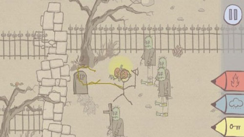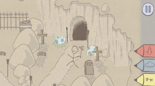 場景八,這一關(guān)有點(diǎn)難度,先沿路往上走,看到一個(gè)金色的門和墓碑,畫個(gè)鑰匙把墓碑打開就能進(jìn)入了。