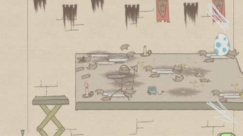 向上走發(fā)現(xiàn)柵欄,畫個(gè)斧頭或者火將其摧毀,繼續(xù)前進(jìn)。上面的藍(lán)色蛋可以不用管。