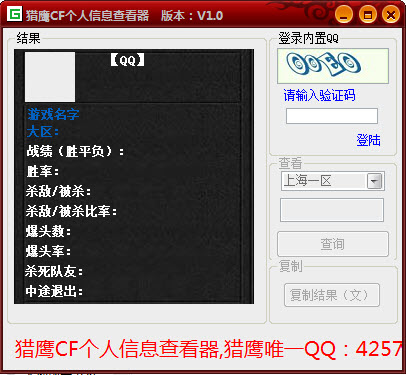 獵鷹CF個(gè)人信息查看器是一個(gè)非常不錯(cuò)的cf輔助工具,一鍵查看個(gè)人信息,需要的玩家趕緊下載使用吧!