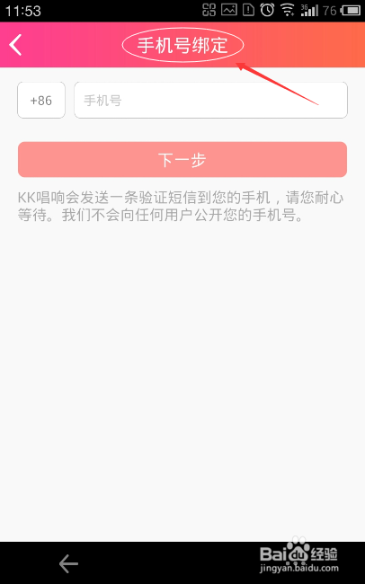 進(jìn)入手機(jī)號綁定頁,輸入你要綁定的手機(jī)號,點(diǎn)擊“下一步”,注:系統(tǒng)會自動向該手機(jī)發(fā)送一個六位數(shù)的驗(yàn)證碼,五分鐘之內(nèi)有效