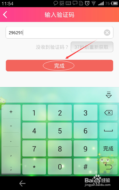 輸入6位驗(yàn)證碼,點(diǎn)擊“完成”,注:如果沒有收到驗(yàn)證碼,可根據(jù)倒計時提示,在一定時間后重新獲取