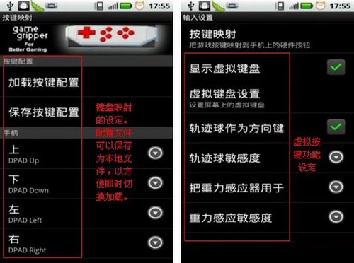 4、在設(shè)置→輸入設(shè)置可以對(duì)一些虛擬按鍵的操作來(lái)針對(duì)性設(shè)定。比如一些手機(jī)自帶鍵盤(pán)的同學(xué)們就可以將虛擬按鍵映射到鍵盤(pán)對(duì)應(yīng)的鍵位上來(lái)操作游戲,從而可以更全面的觀看到游戲的效果。在虛擬按鍵上也可以設(shè)置按鍵震動(dòng)和軌跡球觸摸重力感應(yīng)等等選項(xiàng),雖然不是說(shuō)所有朋友都能用上,但起碼顯得這個(gè)功能十分的貼心。還有,就是通過(guò)輸入設(shè)置可以跳幀虛擬按鍵的透明度,這個(gè)作用就不多解釋了。