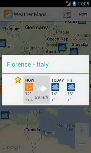 Weather Maps(天氣地圖) 0.7 For Android 天氣地圖 Weather Maps Beta可以直接在谷歌地圖上顯示天氣。您可以用它來(lái)看看實(shí)際情況和天氣預(yù)報(bào),今天和明天的天氣情況。