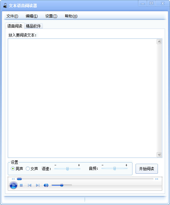 文本閱讀器此工具可將任意長度的文本轉(zhuǎn)換為語音播放出來,也可以將轉(zhuǎn)換好的語音數(shù)據(jù)保存。是喜歡電腦看小說的網(wǎng)民不錯的工具,可減輕眼睛疲勞。非常的實用。