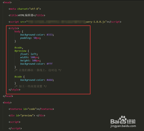3.然后我們準(zhǔn)備好兩部分內(nèi)容,一部分是書寫html的,一部分是顯示html內(nèi)容的,如下圖所示