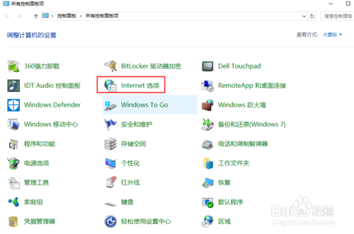 3.在控制面板界面中,可以找到一項(xiàng)是Internet選項(xiàng)。請(qǐng)點(diǎn)擊該項(xiàng),進(jìn)入其界面之中。