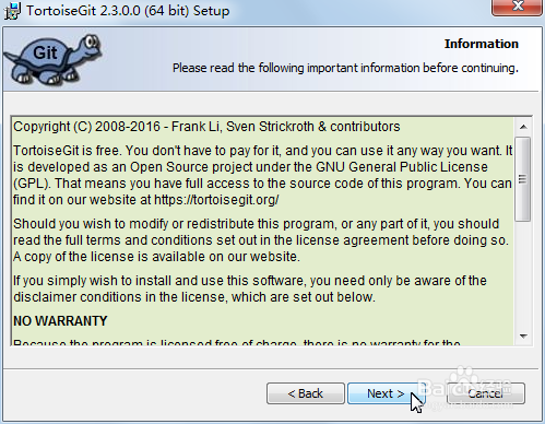閱讀了解關(guān)于TortoiseGit的重要信息,點(diǎn)擊“Next”
