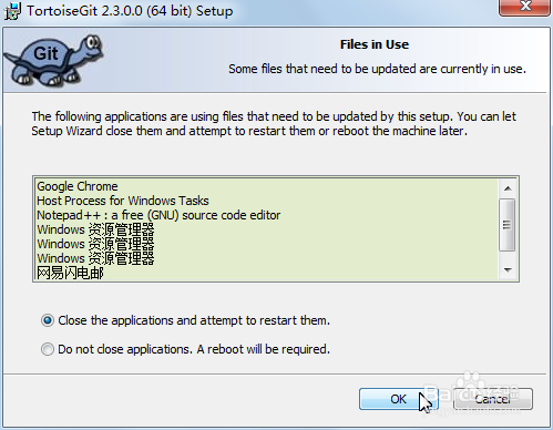 安裝程序無法自動(dòng)關(guān)閉所有窗口,需要手動(dòng)關(guān)閉完成后點(diǎn)擊“OK”