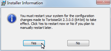 由于向資源管理器添加了右鍵菜單,需要重新啟動(dòng)計(jì)算機(jī)才能生效,如果您現(xiàn)在就想重啟,點(diǎn)擊“Yes”,如果想稍后自己手動(dòng)重啟,點(diǎn)擊“No”