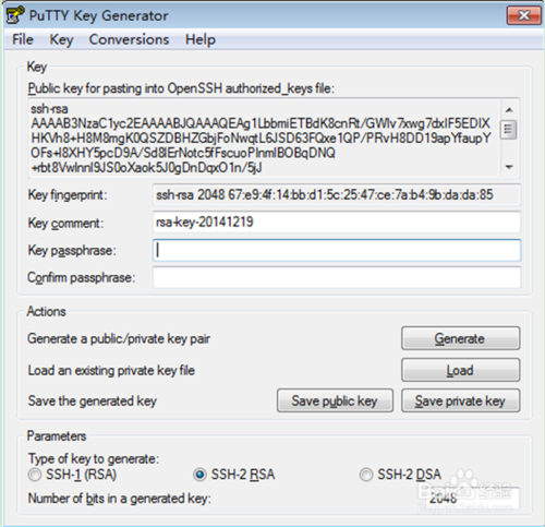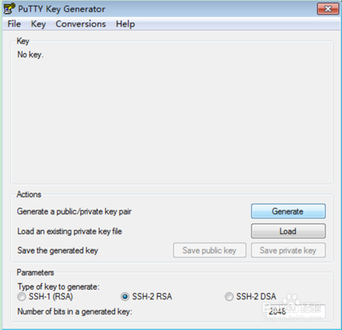在PuTTY Key Generator應(yīng)用對(duì)話框中選擇Generate按鈕: