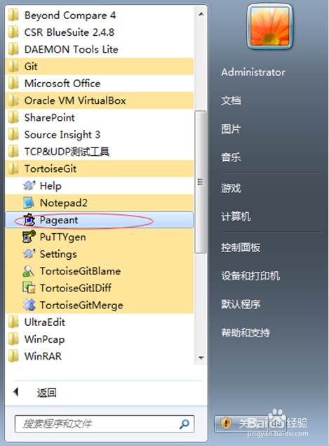 配置SSH登錄密鑰,如圖運(yùn)行TortoiseGit軟件包中的Pageant程序: