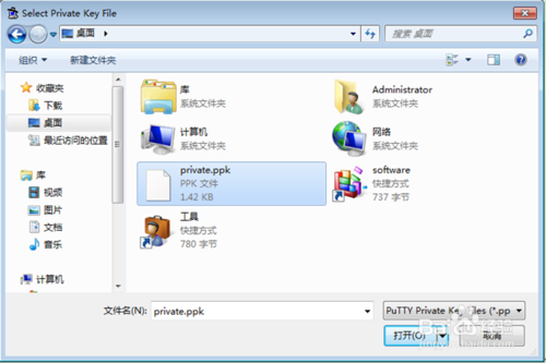 選擇Add Key菜單欄,出現(xiàn)Select Private Key File文件選擇框,選擇之前生成的對(duì)應(yīng)的私鑰文件(.ppk)文件,配置完成(安全起見,此時(shí)可刪除該私鑰文件了)。