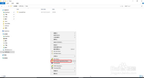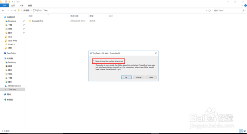 假設(shè)我們的java工程放在目錄D:\\Test中,那么我們進(jìn)入Test文件夾中,右鍵菜單點(diǎn)擊【Git Create repository here】,這時(shí)彈出一個(gè)對(duì)話框要我們選擇是否勾選【Make it Bare】,如果勾選上的話表示我們?cè)诋?dāng)前目錄中只有g(shù)it的repository文件夾和文件,代碼工作區(qū)在另外的地方,也就是說git的倉庫信息和代碼是分開在不同的地方;如果不勾選【Make it Bare】的話,git的倉庫和代碼是處在同一個(gè)目錄中進(jìn)行管理。在這里我不勾選【Make it Bare】,創(chuàng)建完以后目錄中多了個(gè)隱藏的文件夾.git,里面存放了git倉庫的信息。