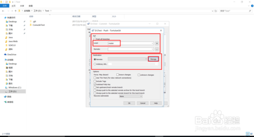 在【Push】窗體中,Ref區(qū)域表示我們本地的倉庫代碼,Destination區(qū)域表示要推送到的目標(biāo)倉庫。Local中的master表示本地倉庫的主分支,點(diǎn)擊Remote右邊的【Manage】按鈕,進(jìn)行遠(yuǎn)程倉庫信息的設(shè)置。