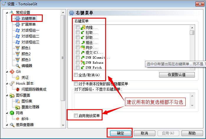 進(jìn)入到設(shè)置對(duì)話框頁面中,可以看到關(guān)于功能設(shè)置的都在這個(gè)頁面,這里我們只需要看General》Context Menu