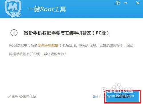 7、備份完成后,直接點(diǎn)擊“我已備份,直接Root”按鈕。