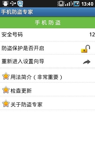 防盜專家(GuardExpert),是由中國(guó)專業(yè)開(kāi)發(fā)團(tuán)隊(duì)蜂窩世紀(jì)研發(fā)設(shè)計(jì)的一款裝機(jī)必備保護(hù)手機(jī)、防盜追蹤的手機(jī)應(yīng)用。有了手機(jī)防盜專家,您就可以放心啦!