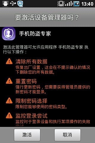 換卡通知,當(dāng)手機(jī)SIM卡被更換時(shí),自動(dòng)向您設(shè)置的安全號(hào)碼發(fā)送盜賊相關(guān)信息,進(jìn)一步遠(yuǎn)程控制被盜手機(jī);