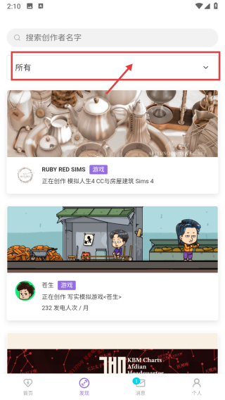2. 在發(fā)現(xiàn)界面,輕點分類篩選框,使分類列表展開。