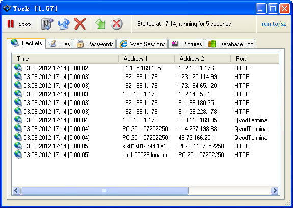 York是一款免費(fèi)的網(wǎng)絡(luò)流量監(jiān)控工具,它的最大特點(diǎn)就是能夠捕捉電腦使用者的網(wǎng)絡(luò)操作,并以幻燈片方式顯示出來。同時(shí)程序也會(huì)進(jìn)行HTTP、FTP、POP3、SMTP、VNC 和AIM 密碼等流量監(jiān)控。每當(dāng)上傳或下載來至 HTTP 和 FTP 服務(wù)器上的文件時(shí),也會(huì)將其捕捉并記錄下來。