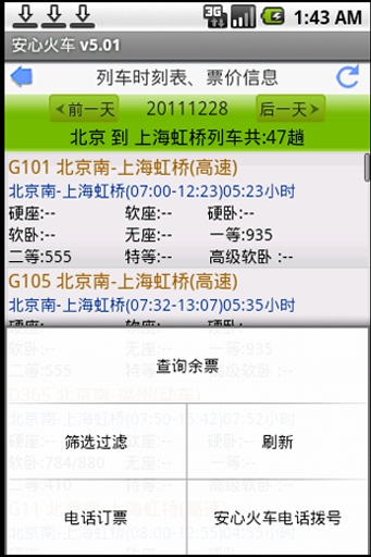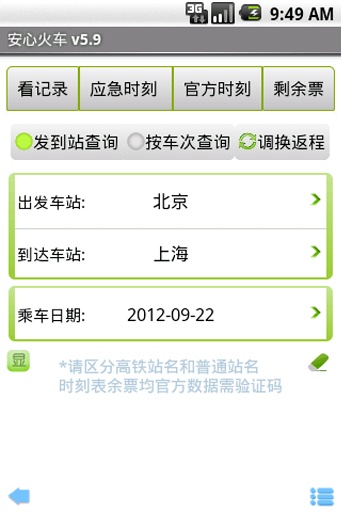 1.時(shí)刻表與剩余票數(shù)據(jù)均直接查詢自官方網(wǎng)站,從7月1起,官方網(wǎng)站需要輸入驗(yàn)證碼。如果您需要準(zhǔn)確無誤的列車信息,本軟件是您的不二選擇!2.提供時(shí)刻表,余票,正晚點(diǎn),代售點(diǎn)等全面準(zhǔn)確數(shù)據(jù)。