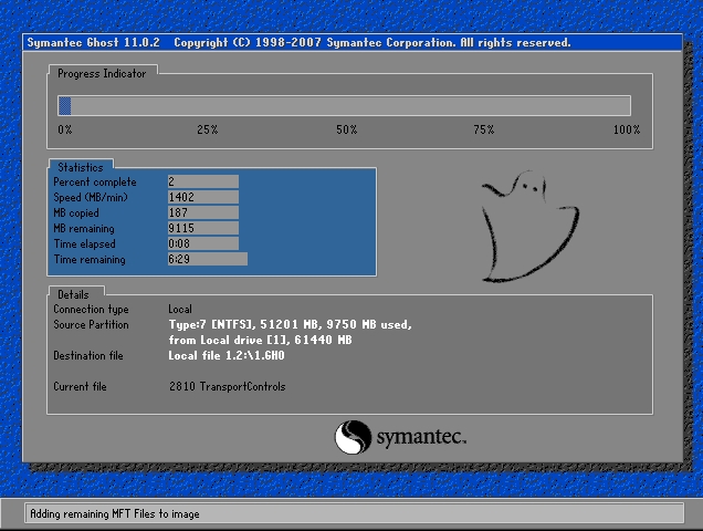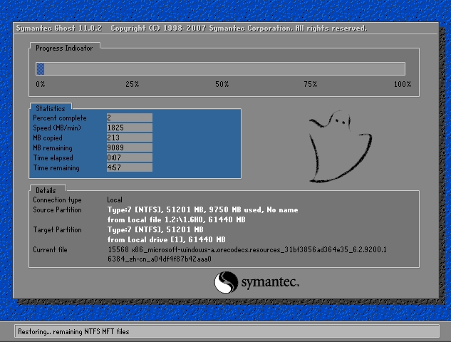 8、出現(xiàn)下面的界面后,就開(kāi)始重新備份系統(tǒng)了,備份完系統(tǒng)后,電腦就會(huì)重新啟動(dòng)了。下一次電腦出現(xiàn)系統(tǒng)方面的故障后,進(jìn)行一鍵還原就可以了。